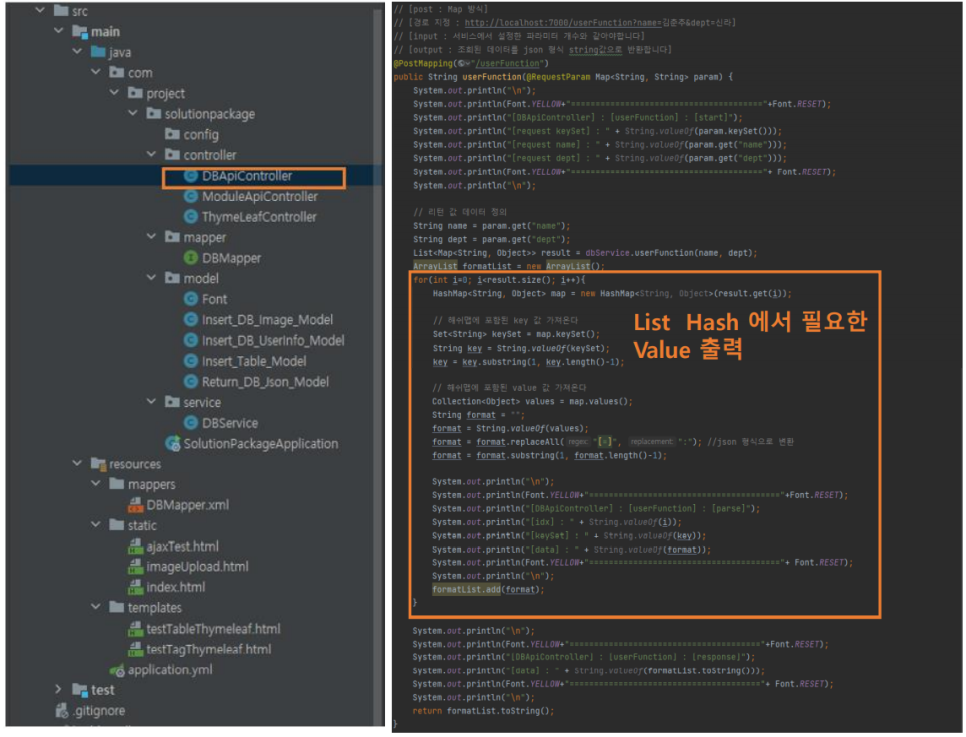// [로직 : 사용자 API 호출 >> 컨트롤러에서 서비스 호출 >> 서비스에서 DB Mapper 호출]
