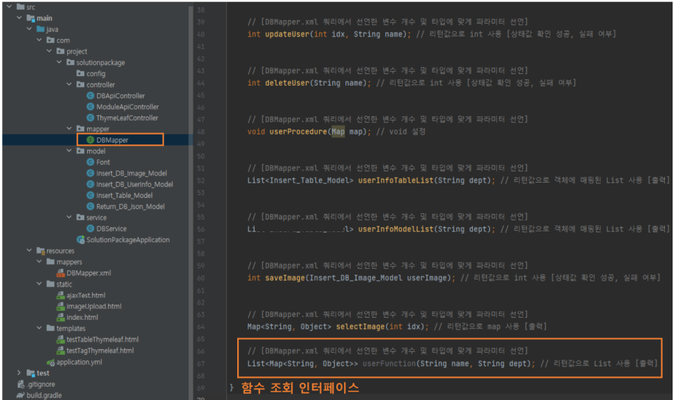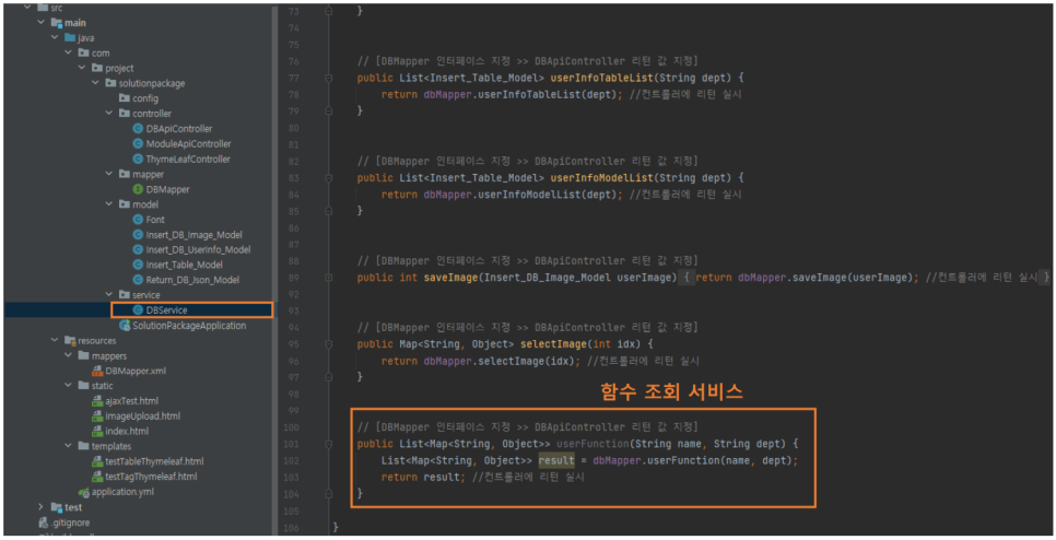 * 1. DBMapper 인터페이스 호출 및 controller 에 반환 할 리턴 값 정의