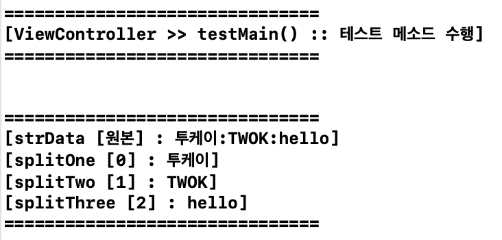 printf("[ViewController >> testMain() :: 테스트 메소드 수행] \n");