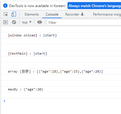console.log("maxBy : " + JSON.stringify(maxBy));