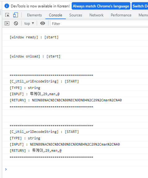 * INPUT : C_Util_urlEncodeString( "투케이,29,man,@" );
