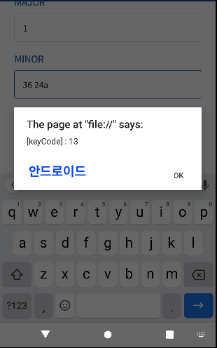1. 모바일 웹뷰 가상 키보드에서 엔터 및 이동 키 입력 시 반환 되는 KeyCode 값은 [13] 입니다