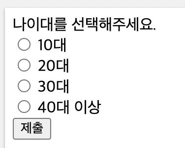 <input type="radio" name="ages" id="twenty" value="twenties">