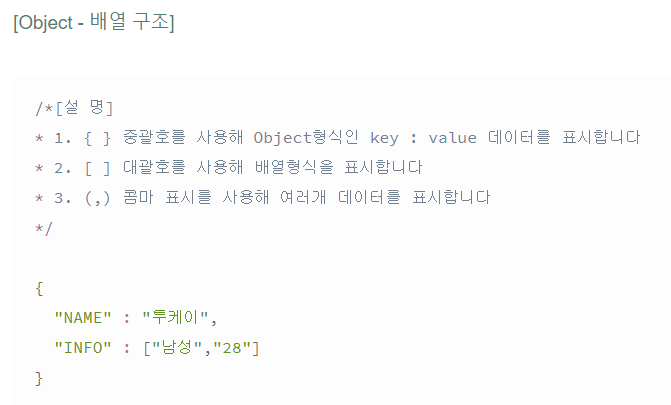jsonObject 데이터 : {"name":"투케이","man":true,"idx":["하나","둘"],"age":28}