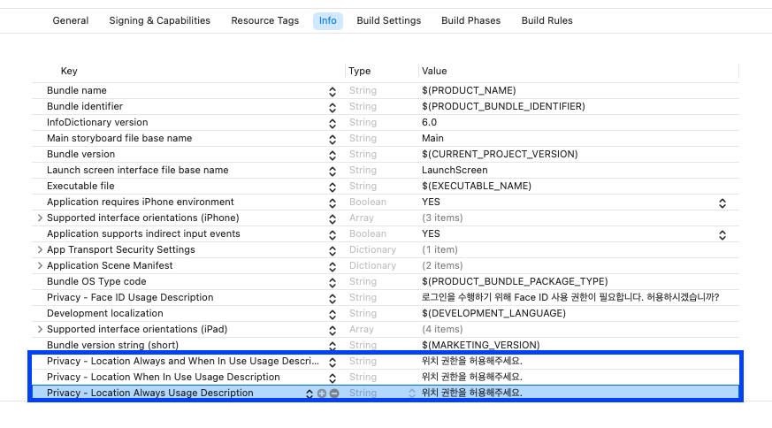[사전 info plist 권한 설정]