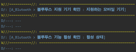 Log.d("","\n"+"[A_Blutooth > 블루투스 기능 활성 확인 : 활성 상태]");