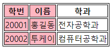 2. 본 예시 에서는 colgroup span="2" 로 학번 과 이름 (열) 값을 설정 합니다