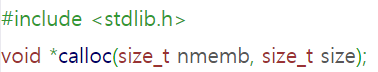 - malloc() 함수와 다른 점은 할당하고자 하는 메모리의 크기를 두 개의 인수로 나누어 전달받습니다