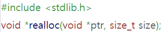 - realloc() 함수의 첫 번째 인수는 크기를 바꾸고자 하는 메모리 공간을 가리키는 포인터를 전달받고, 두 번째 인수로는 해당 메모리 공간에 재할당할 크기를 전달합니다