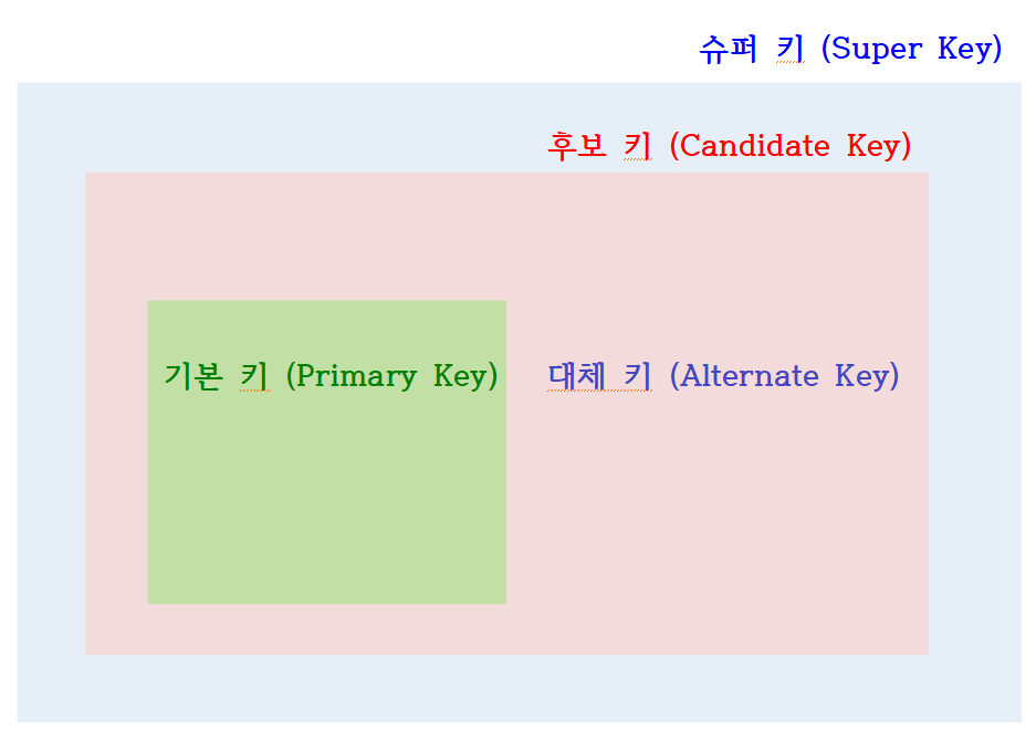 - 대체키는 기본키로 선정되지 않은 후보키입니다