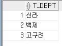 WHERE T_DEPT IN ('고구려', '백제', '신라')