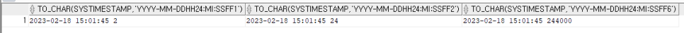 SELECT TO_CHAR(SYSTIMESTAMP, 'YYYY-MM-DD HH24:MI:SS FF1'),