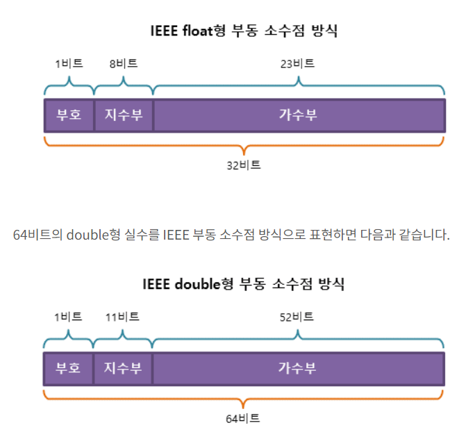 - 부동 소수점 이란 하나의 실수를 가수부와 지수부로 나누어 표현하는 방식입니다
