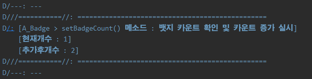 Log.d("","\n"+"[A_Badge > setBadgeCount() 메소드 : 뱃지 카운트 확인 및 카운트 증가 실시]");