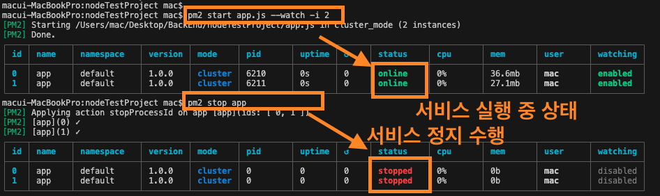 215. (NodeJs) [Mac Os] [PM2] : PM2 모듈 사용해 pm2 stop 실행 중 인 서비스 정지 수행 본문