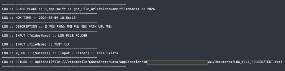S_Log._D_(description: "앱 파일 저장소 특정 파일 경로 PATH URL 확인", data: [