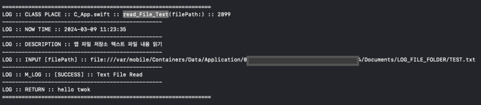 S_Log._D_(description: "앱 파일 저장소 텍스트 파일 내용 읽기", data: [
