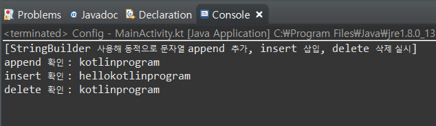 25. (kotlin/코틀린) StringBuilder 사용해 동적으로 문자열 append 추가, insert 삽입, delete 삭제 실시 본문