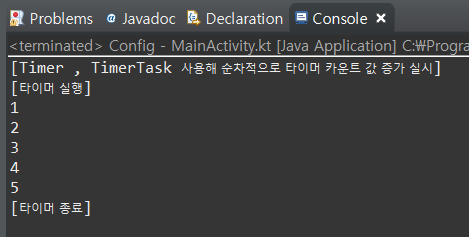println("[Timer , TimerTask 사용해 순차적으로 타이머 카운트 값 증가 실시]")