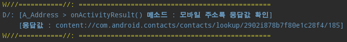 Log.d("","\n"+"[A_Address > onActivityResult() 메소드 : 모바일 주소록 응답값 확인]");