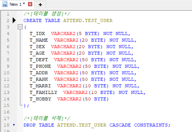 2. toad 툴을 실행 시킨 후 > 테이블을 생성해 줍니다
