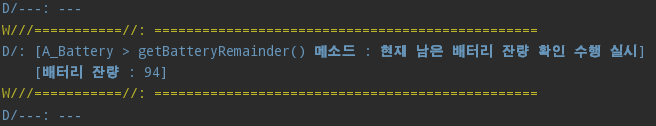 Log.d("","\n"+"[A_Battery > getBatteryRemainder() 메소드 : 현재 남은 배터리 잔량 확인 수행 실시]");