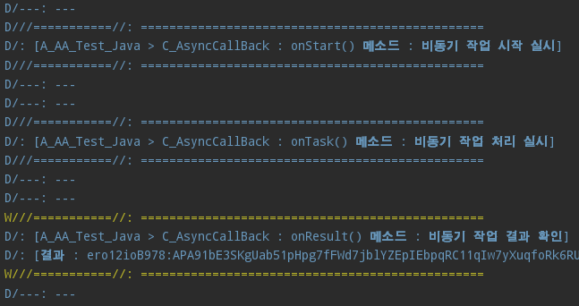 Log.d("","\n"+"[A_AA_Test_Java > C_AsyncCallBack : onResult() 메소드 : 비동기 작업 결과 확인]");