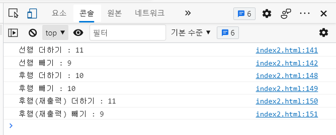 console.log("선행 빼기 : " + (-- int_lead_minus_value));