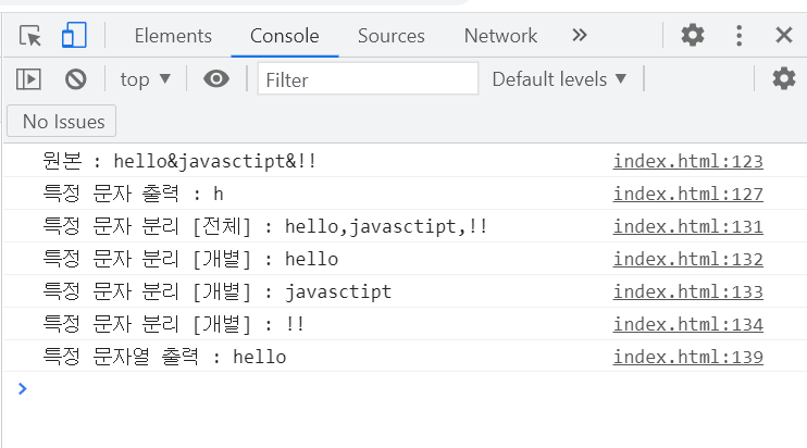 console.log("특정 문자 분리 [전체] : " + str_arr);