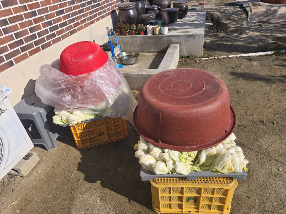 5. 엄마와 누나들 4명이서 배추 양념을 버무리고, 저는 계속 배추를 실어 나르며 반나절 동안 김장 업무를 계속 수행했습니다.