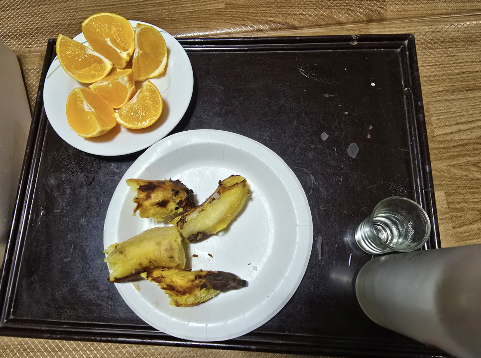7. 식사를 천천히 즐기고 .. 시골 아궁이에서 불을 지피며 구운 군고구마도 야식으로 야무지게 먹었습니다.