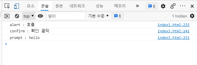 2. window 객체에서 사용가능한 대화 상자 : alert() , confirm() , prompt()