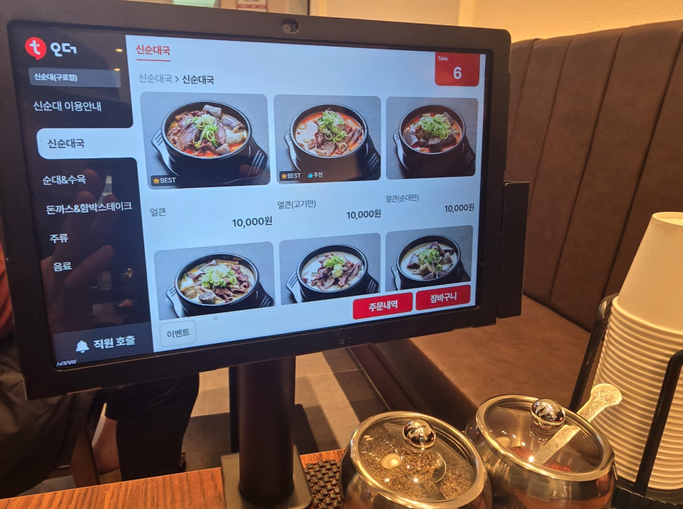 4. 주문은 테이블 오더를 통해서 주문이 가능하며, 순대국 외에 애기들 및 여성분들이 좋아하실 돈까스 및 함박스테이크 메뉴도 포함 되어 있어 좋았습니다.
