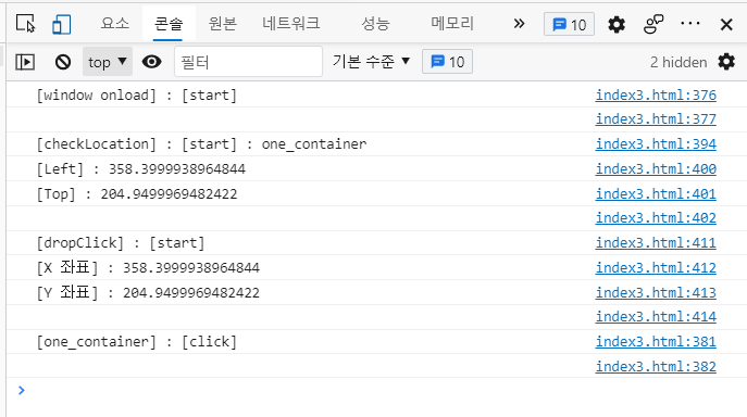 console.log("[X 좌표] : " + x);