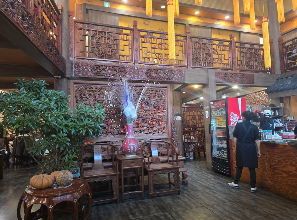 식당 크기는 1층과 2층으로 구성되어 넓은 느낌을 받았고, 중국풍 분위기로 기존 중국집 분위기와 다른 느낌을 받을 수 있어서 좋았습니다.