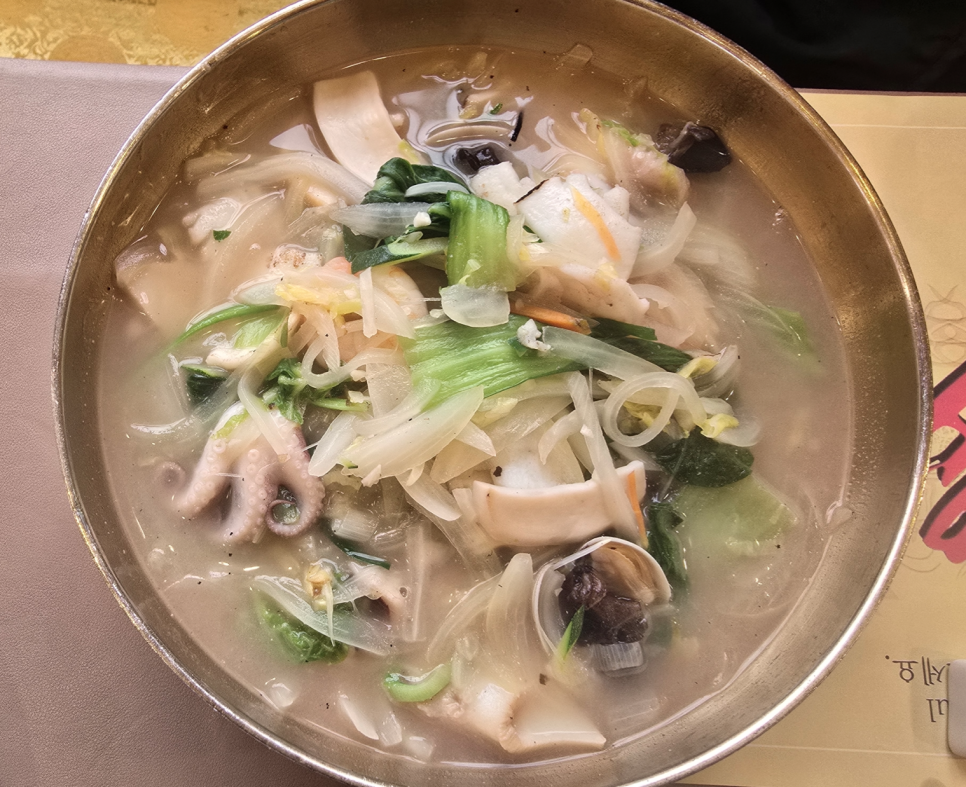 9. ' 백짬뽕 ' 또한 일반 빨간색 짬뽕과 다른 맛이 느껴졌습니다! 자극적이지 않고 편하게 먹을 수 있었고, 비슷한 맛으로는 ' 해물 칼국수 ' 와 비슷한 느낌을 받았습니다.