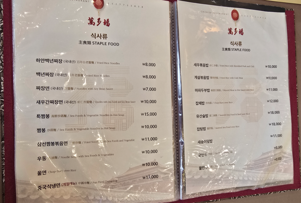 45. (TWOK/LIFE) [일상/스케줄] [맛집] [2026-03-01] 인천 차이나타운 중국집 맛집 ' 만다복 ' 방문 후기 - 백짜장, 백짬뽕, 동파육 (기본 메뉴판 첨부)