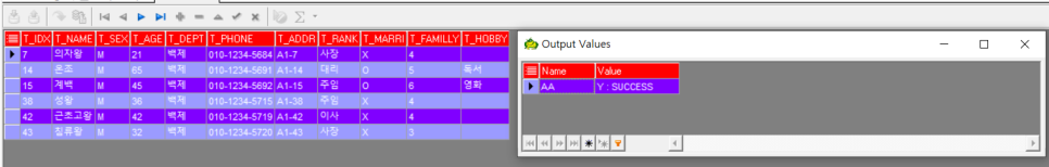 프로시져 호출 - EXEC TEST_USER_PROCEDURE('백제', :AA,:BB);