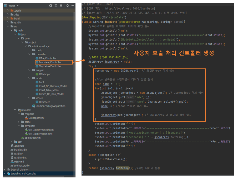 // [post 로직 : 사용자 url 호출 시 >> 내부 로직 처리 >> 리턴 데이터 반환]